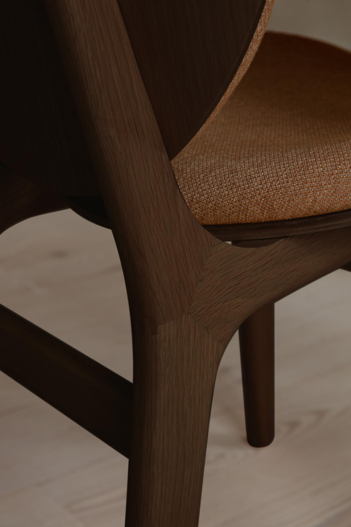 Spisebordstolen A Conversation Piece har en myk og organisk silhuett. Den kombinerer eleganse og funksjonalitet med eksepsjonelt håndverk. Det luftige og skulpturelle designet er utført i solid eik og eikefinér, med runde ben og sømløse skjøter på ryggstøtten som gir varme og karakter til ethvert rom.