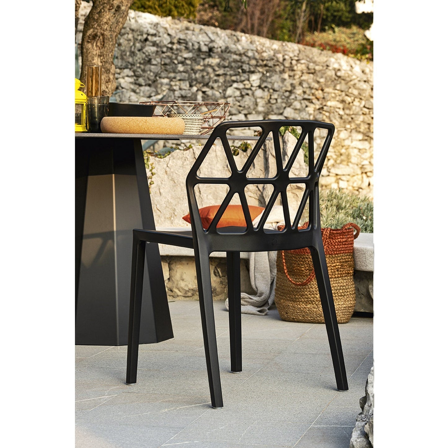 Tøffe Alchemia stol kommer i 6 farger og kan stables. En av de fineste utendørs-stolene vi vet om og akkurat like tøffe inne som ute. Stolen er støpt i polypropylen med en matt ripe-fri overflate. Stolen er testet for offentlig miljø og egner seg derfor flott til f.eks uteservering.