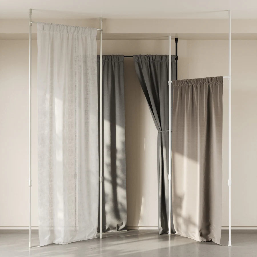 Anywhere – fleksibel gardinstang uten behov for boring, genial som romdeler.