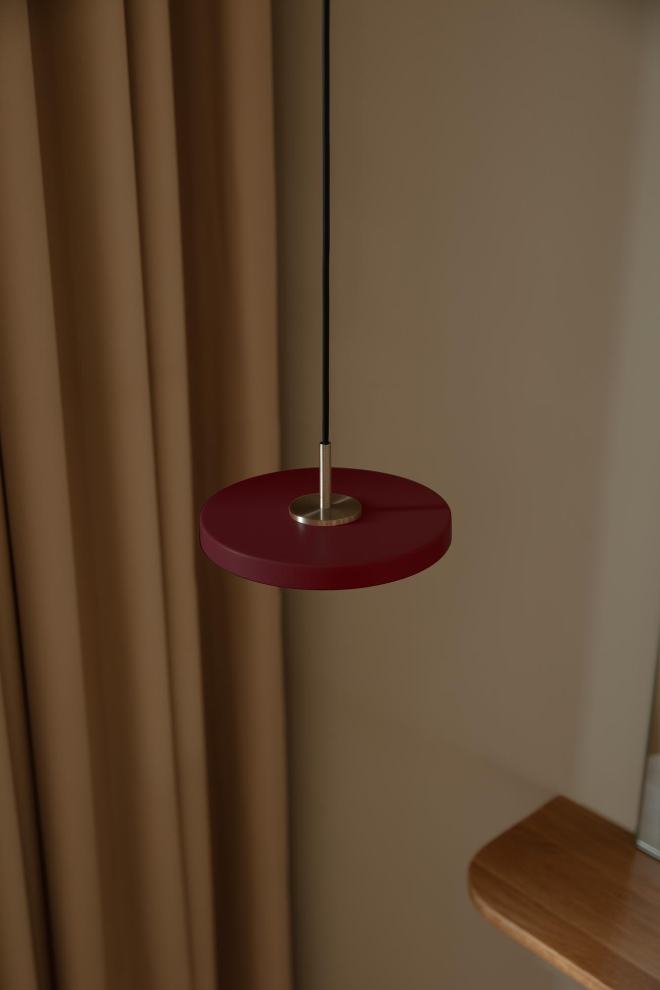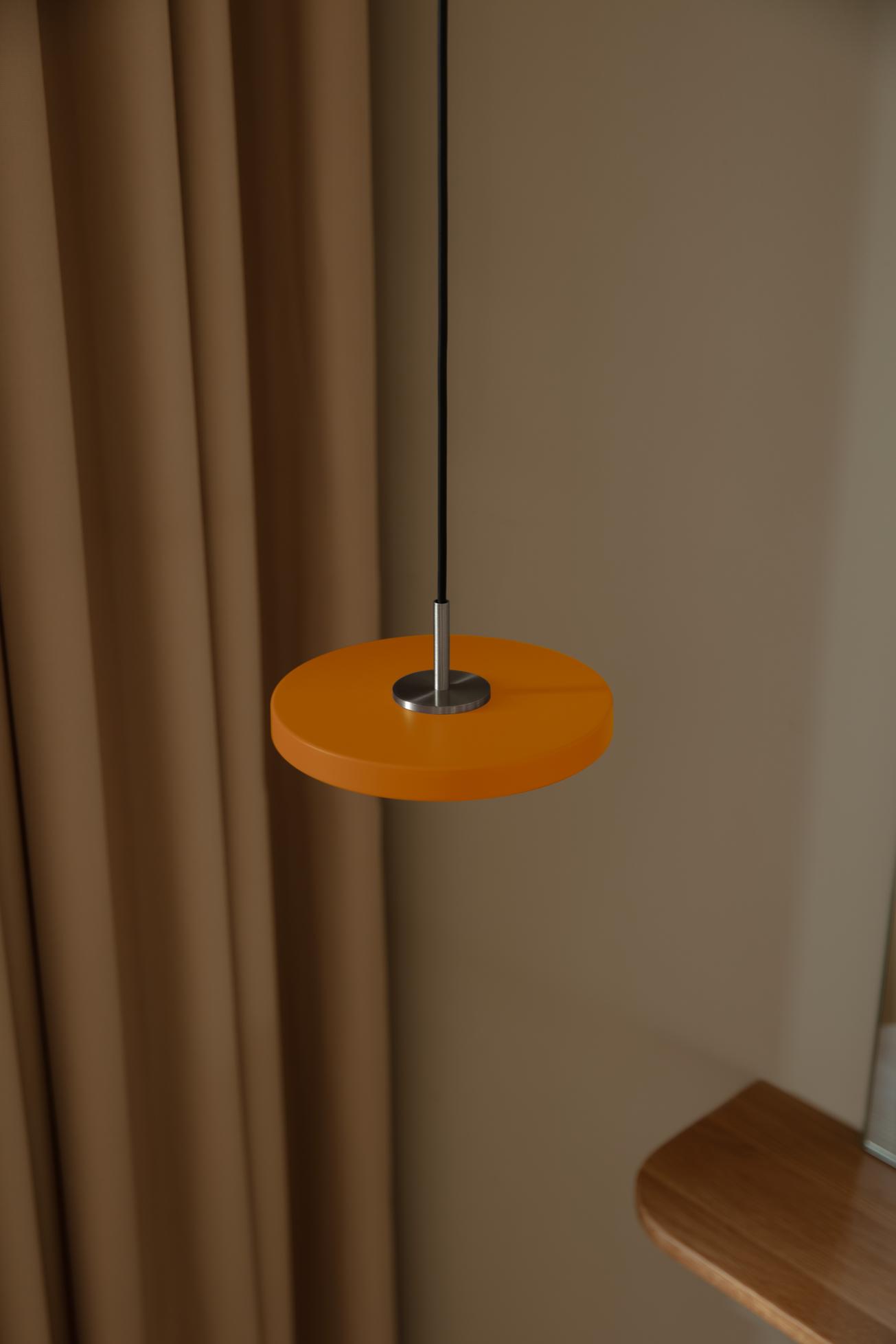 Asteria-pendellampen Micro V2 er den minste pendelen i Asteria serien. Asteria har et elegant og minimalistisk design, som blander design, teknologi og håndverk sømløst. Den er utstyrt med integrert LED-teknologi, preget av sin tidløse og minimalistiske form. LED-panelet kan dimmes ved hjelp av en ekstern dimmer, og det inkluderer en hvit diffuser for å gi mild og myk belysning til rommet.