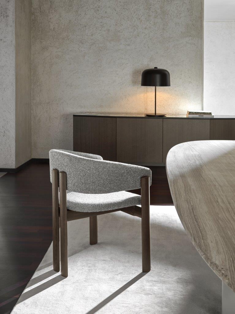 Attraktive og raffinerte former gir opphav til en komposisjon som består av et bord – i forskjellige størrelser – og en stol – dekket med skinn eller stoff. Et originalt og samtidig klassisk utseende for settet, som et urbant landskap som harmonisk bringer sammen forskjellige sjeler.