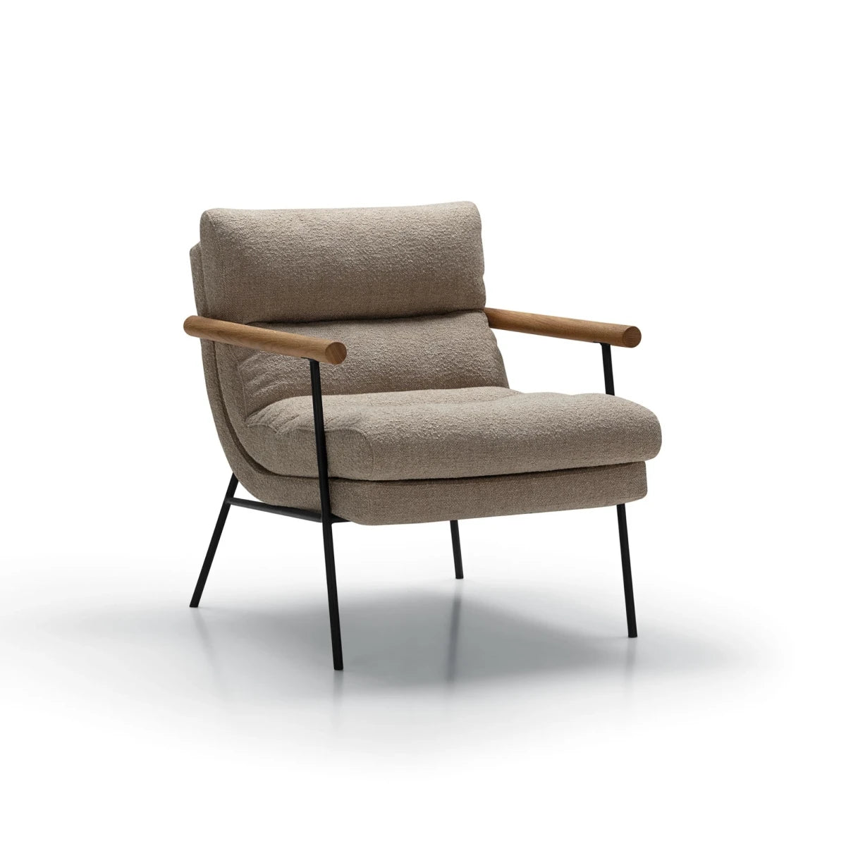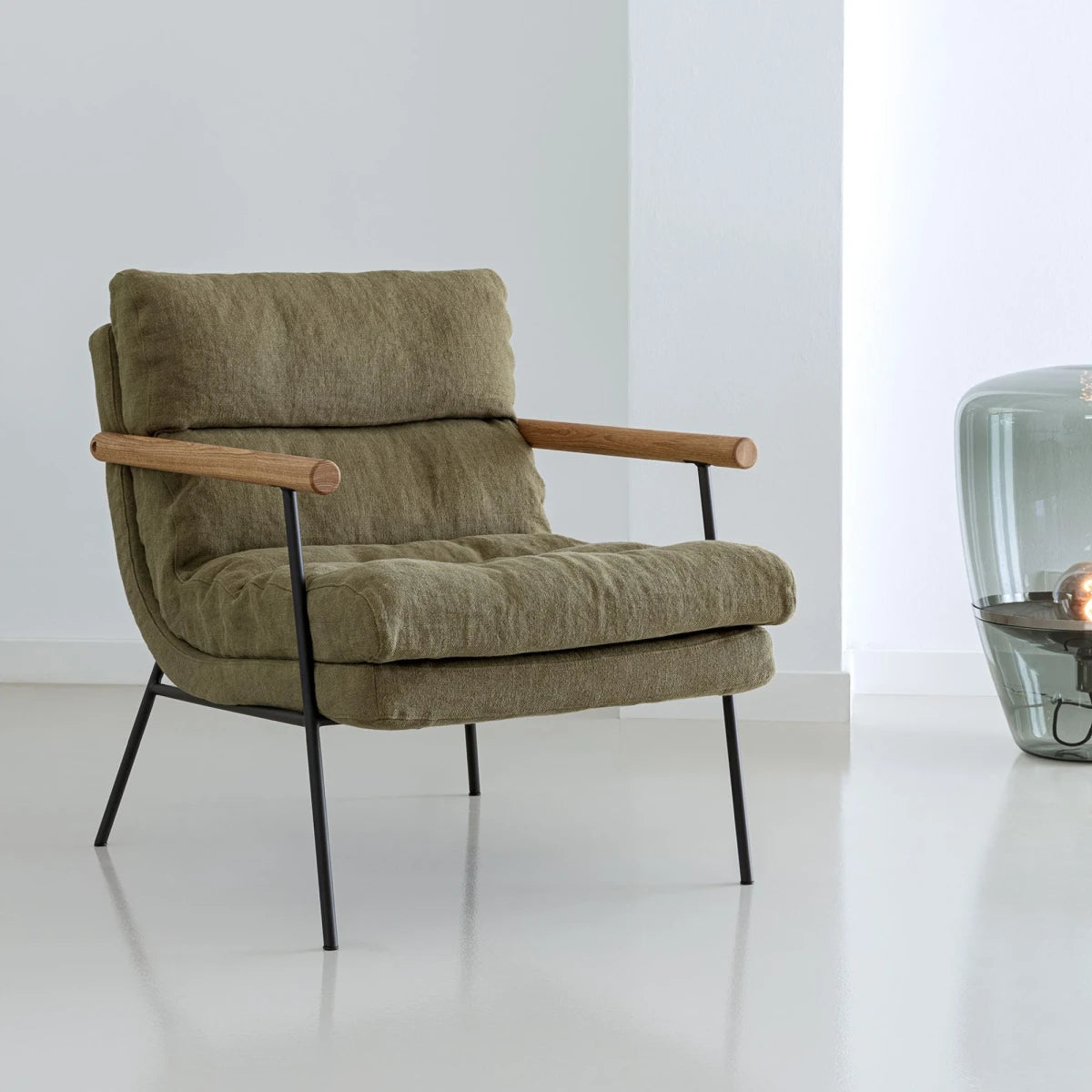 Bill er en karaktersterk lenestol som kombinerer moderne linjer med klassisk komfort. Den avrundede sitteputen og det solide metallunderstellet gir stolen et elegant, men samtidig robust uttrykk.