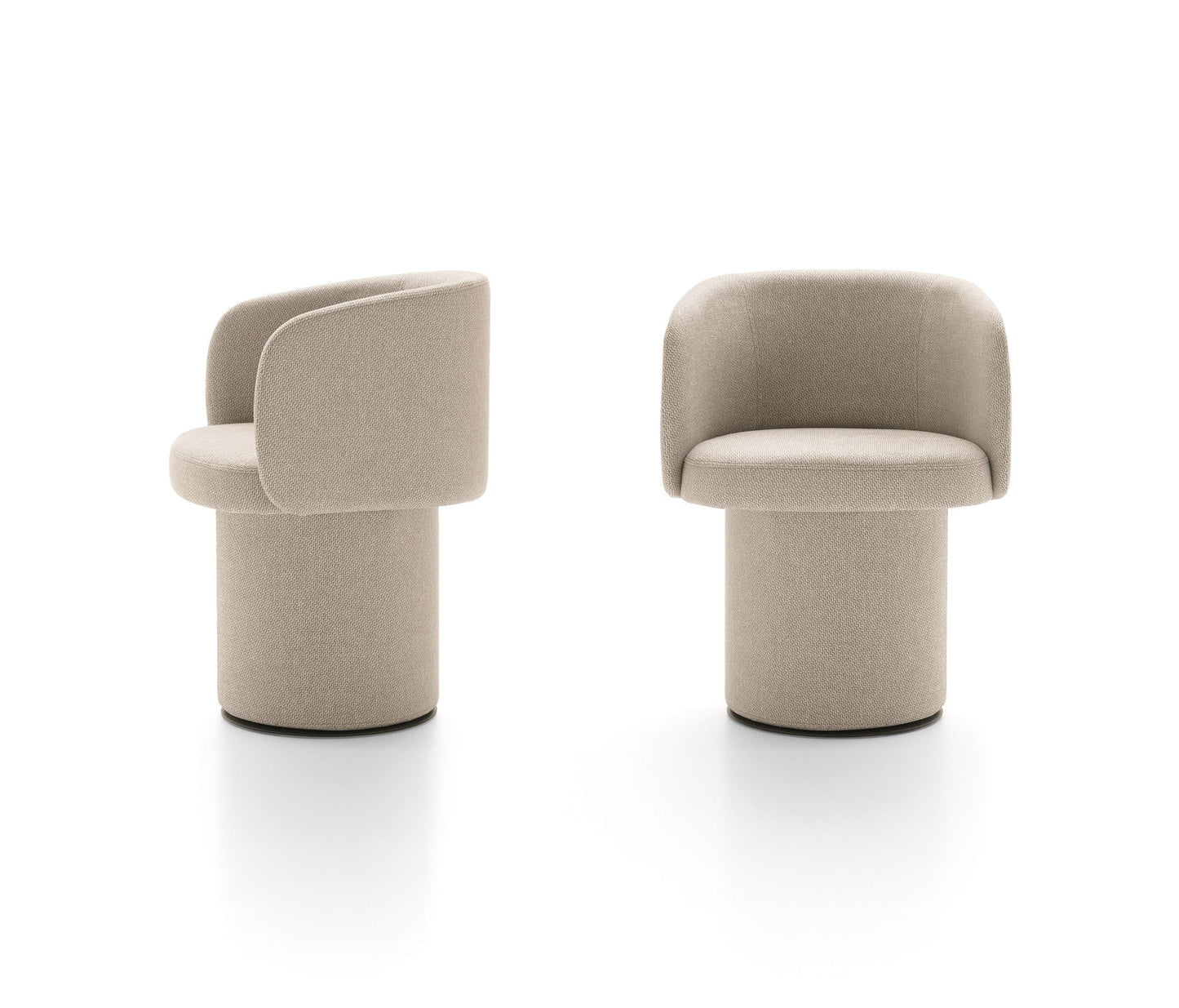 Billie spisestuestol har et elegant, skulpturelt design som fremstår som en ekstrem forenkling av stolens konsept. De tre hovedelementene smelter sammen på en nesten magisk måte. Stolen er utstyrt med en dreiefot.