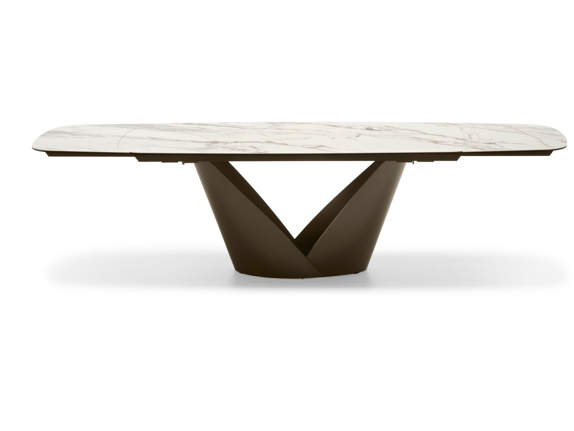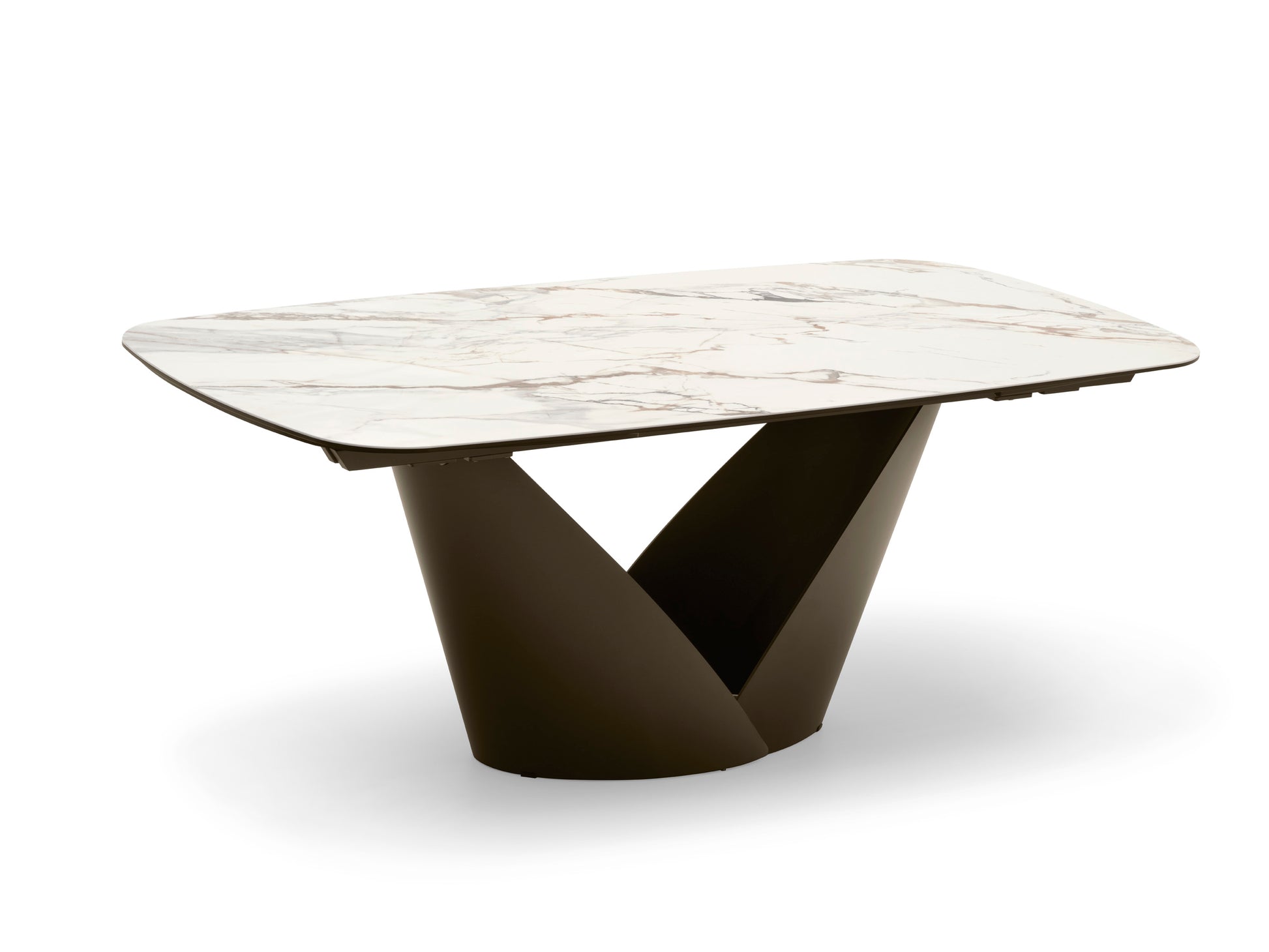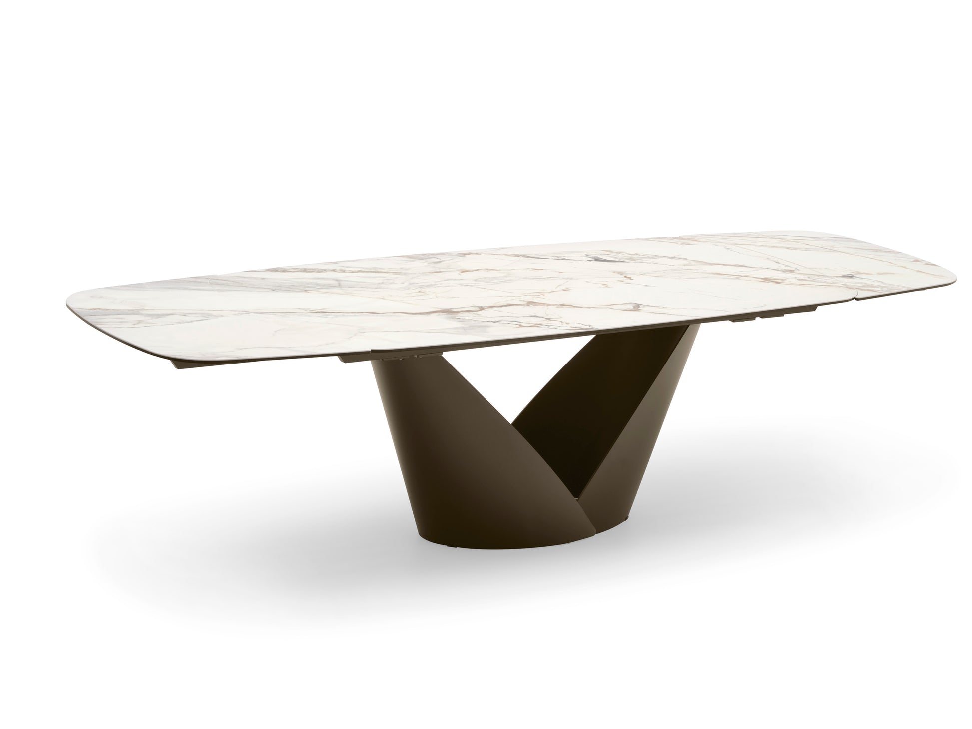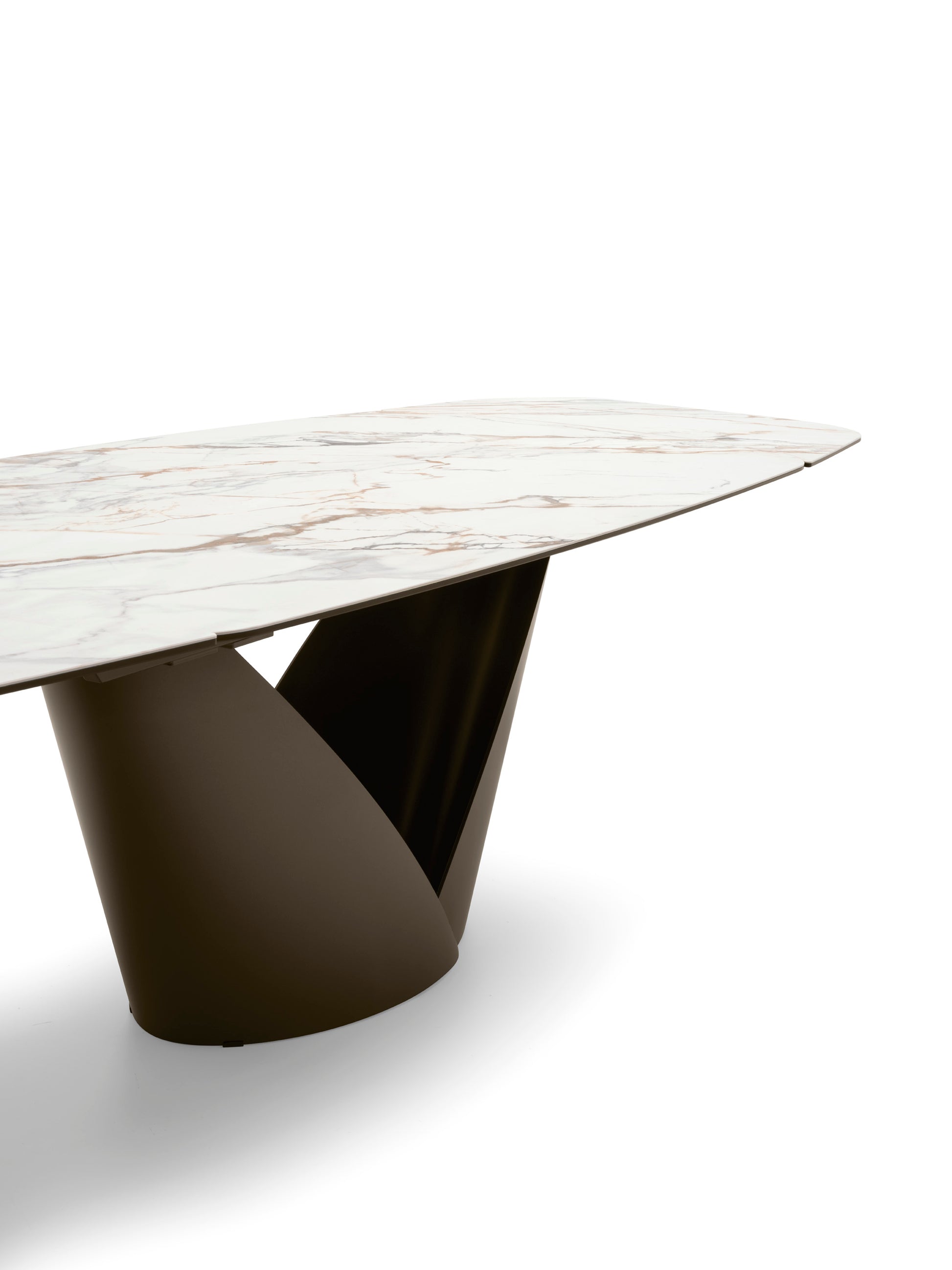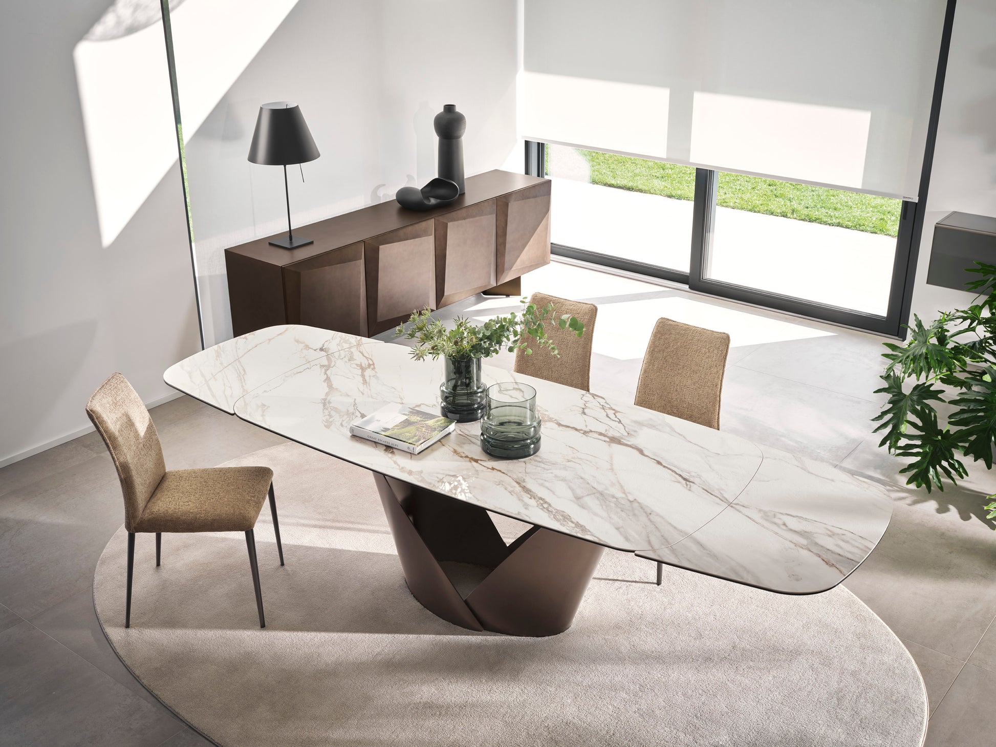 Calla er en serie elegante spisebord designet for å være et naturlig midtpunkt i det moderne hjem. Den unike basen, inspirert av en blomsterkalk, består av to metallblader som fletter seg sammen og skaper et lett, men kraftfullt uttrykk – et symbol på vitalitet og fornyelse.