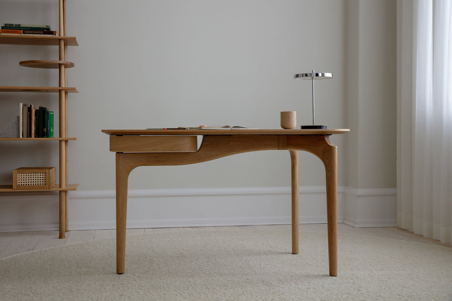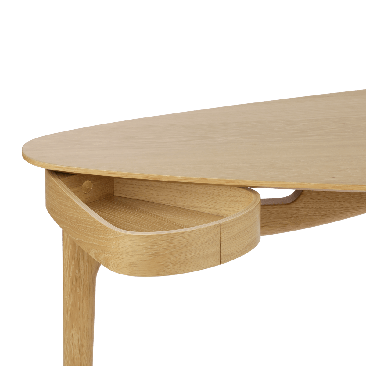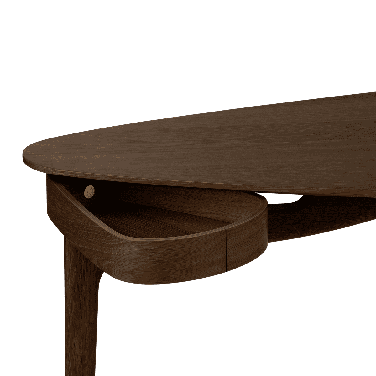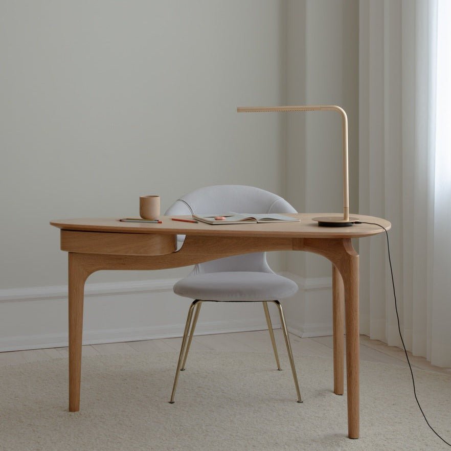 Skrivebordets organiske form legger til en luftig touch til designen, noe som gjør Duende til et nydelig møbel som elegant passer inn i alle rom og innstillinger. Den myke trekantede formen på bordplaten gir bordet en raffinert estetikk, og vil sikre at bordet tar opp minimal plass mens det fremdeles er romslig. Plasser det i hjørnet av soverommet eller stuen som et subtilt, men perfekt sted for konsentrasjon når du jobber hjemmefra, eller plasser det midt i kontoret ditt og la de magiske kurvene komme til live.