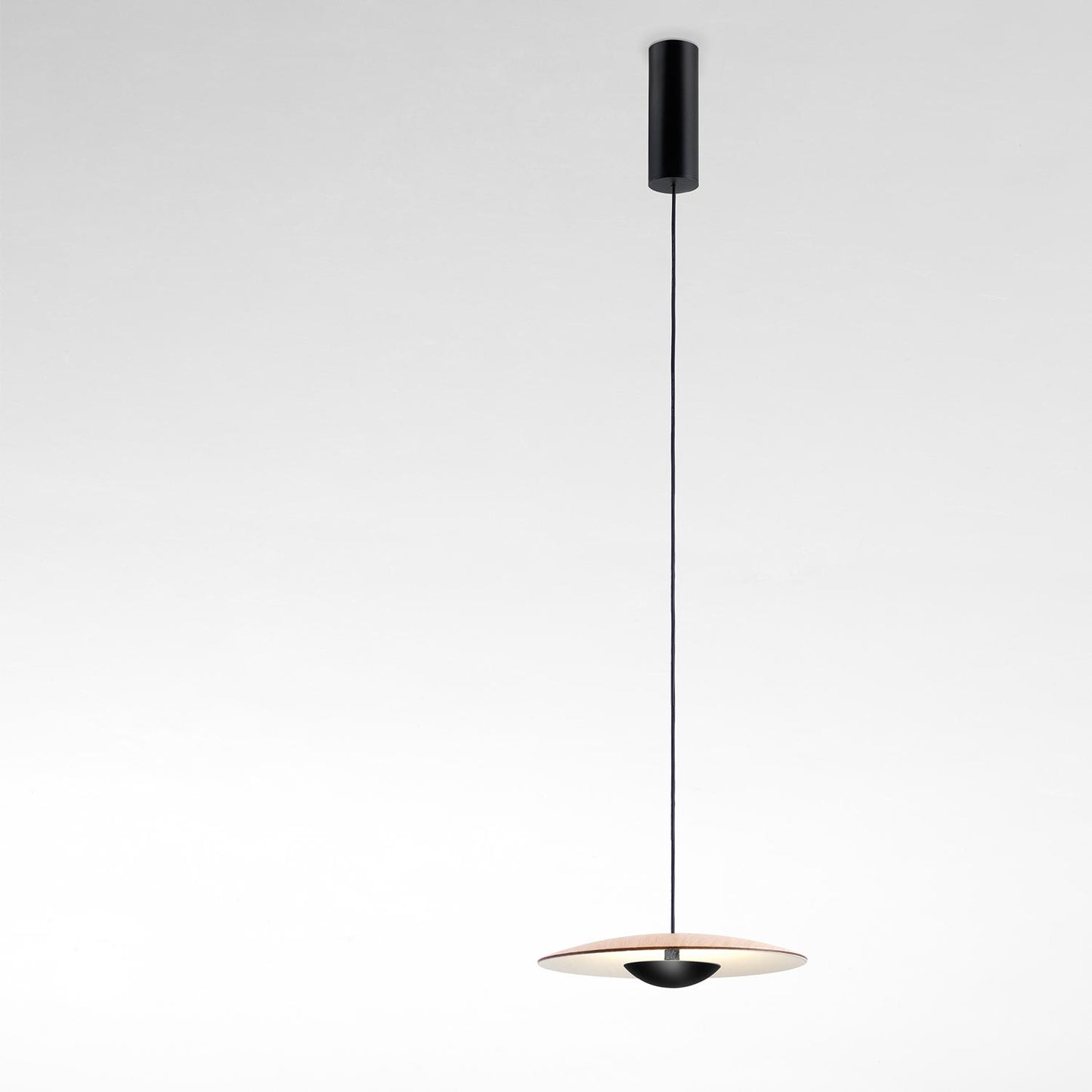Ginger Ø60 er en minimalistisk pendellampe med en vakker rund skjerm. Skjermen har en overflate i tre og den indre skjermen er hvit, den avgir et indirekte lys som diskret lyser opp bordet. I Ginger lampeserien har man valgt å presse tre og papir for å få en fin tre overflate på lampeskjermene.