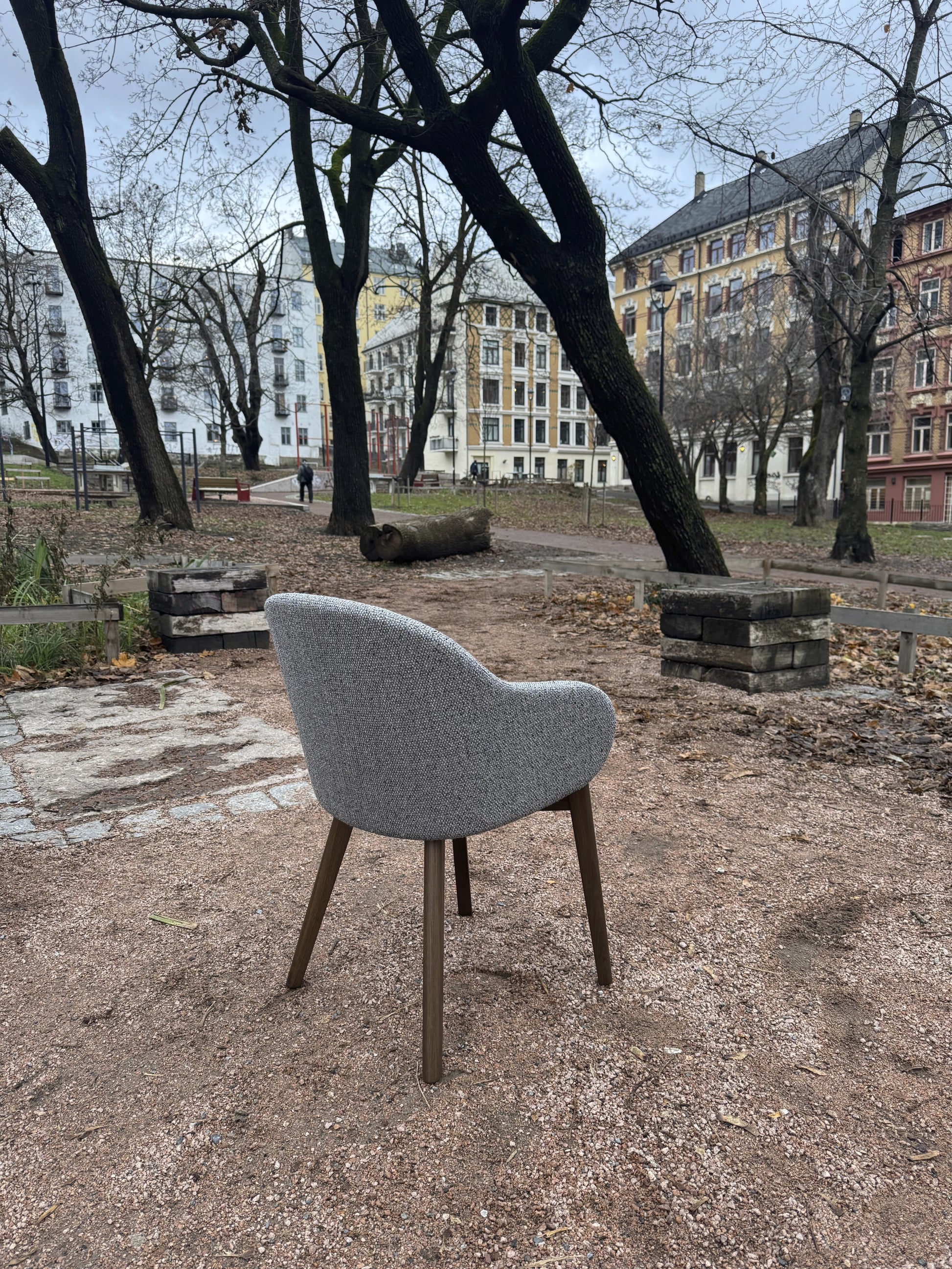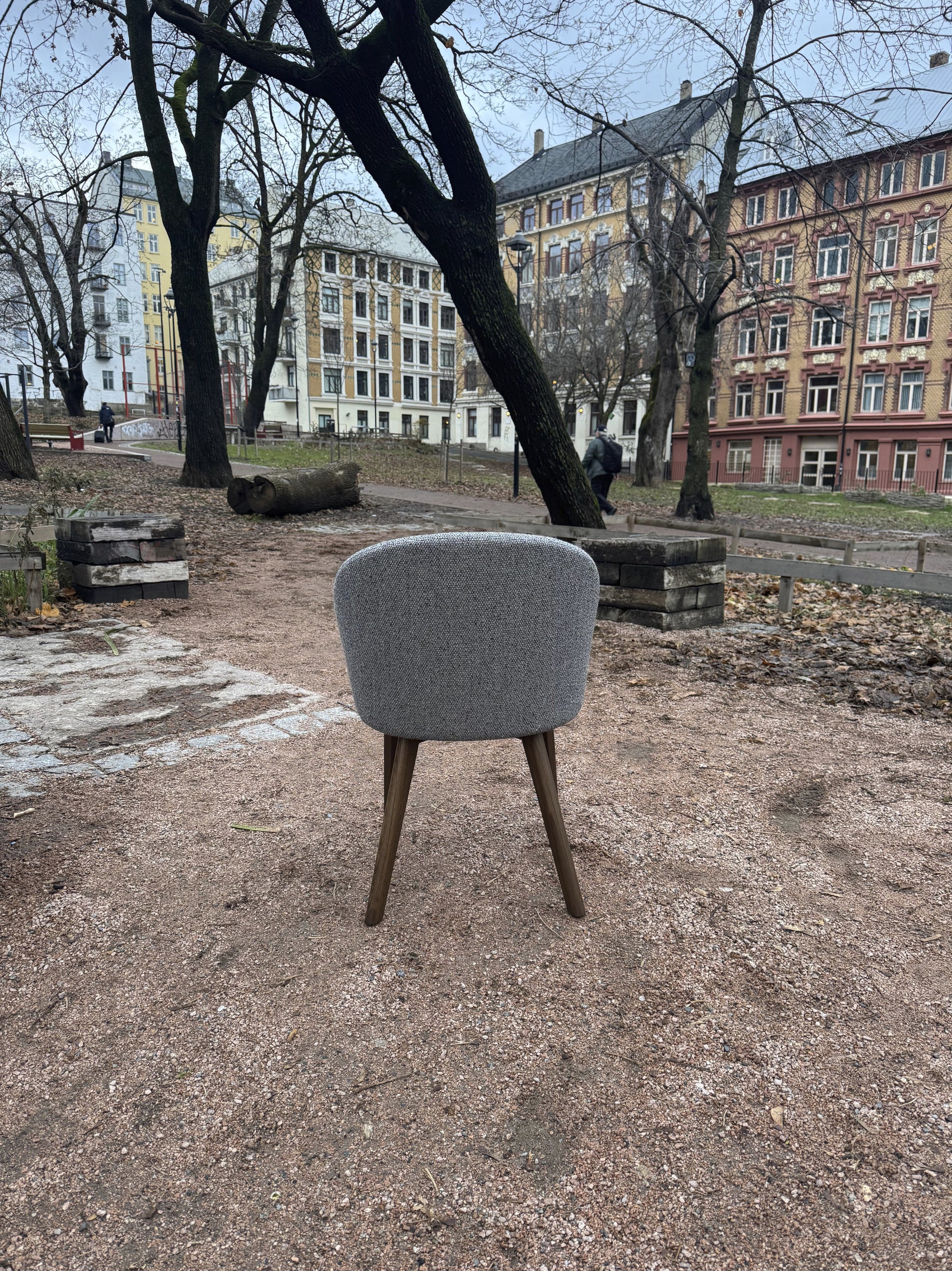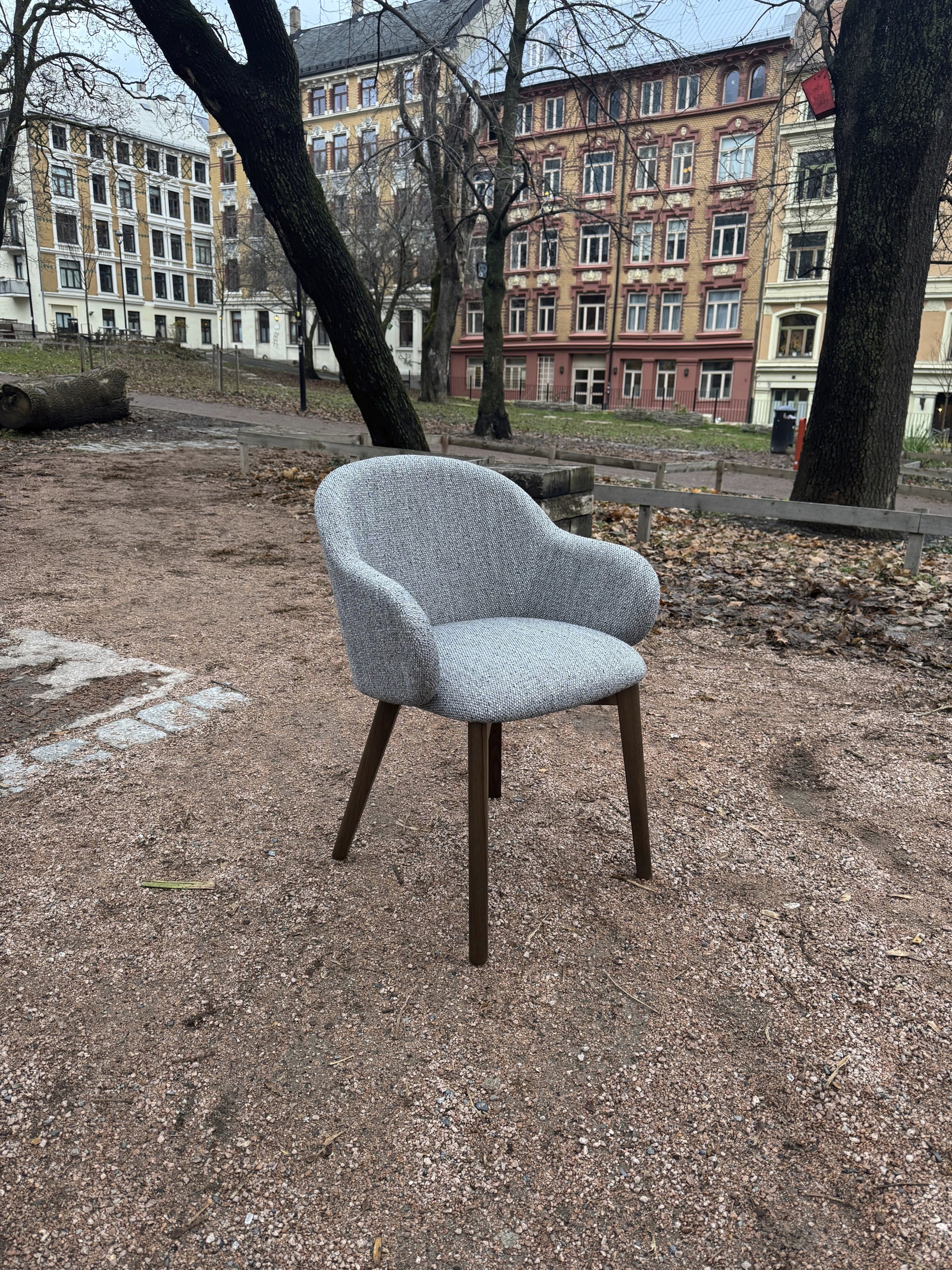 Med en mer innhyllende ryggstøtte og rikelig polstring, tilbyr den nye Holly Fab spisestuestolen med armlener et høyere nivå av komfort, og inviterer folk til å sitte og nyte et måltid eller en samtale i fullstendig avslapning. De massive trebeina legger til et snev av varme og sofistikering, noe som gjør denne nye versjonen av Holly-stolen enda mer egnet for koselige og elegante spisesteder.