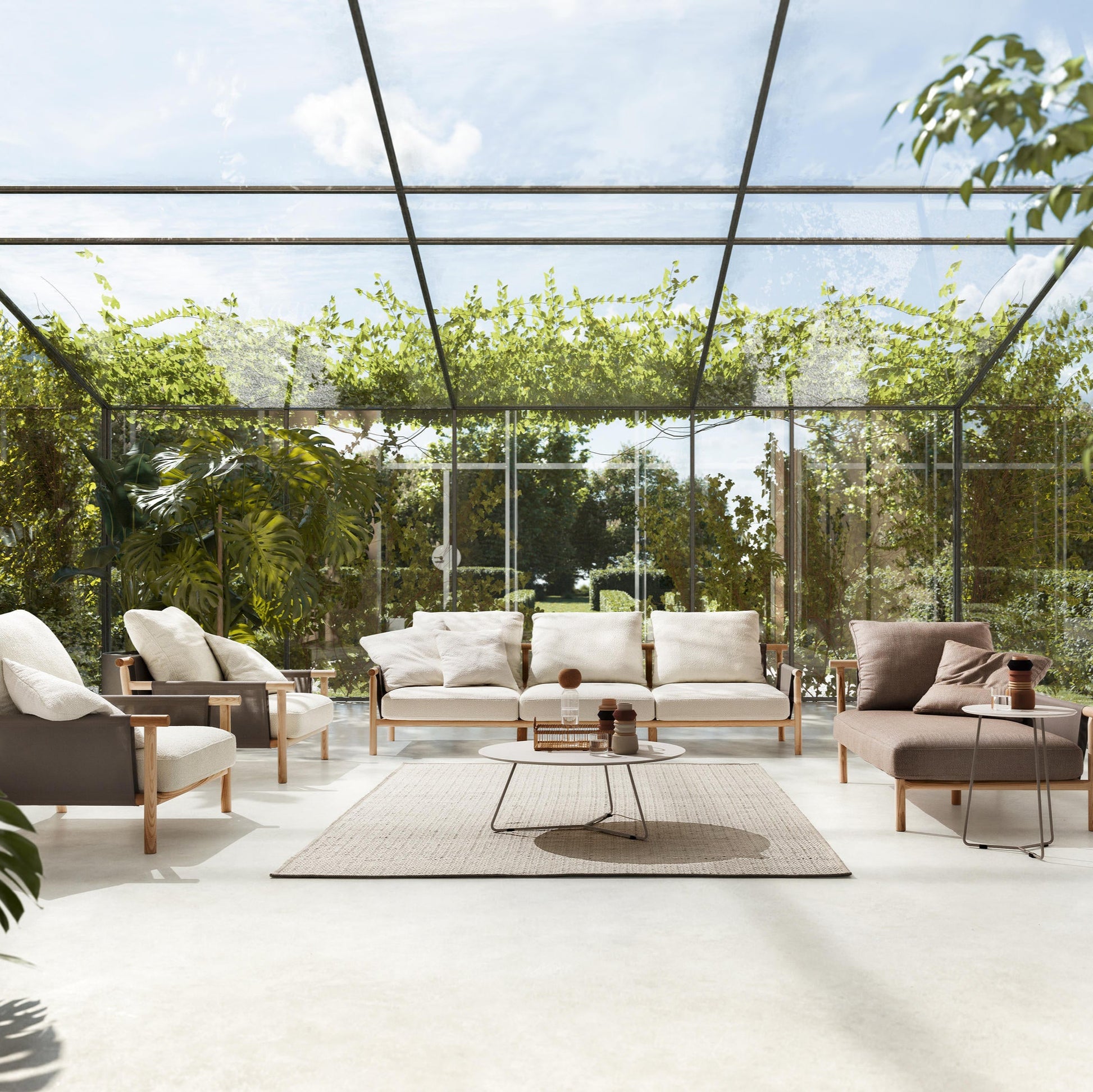 Komplett kolleksjon av eksklusive utemøbler for spiseplass og lounge