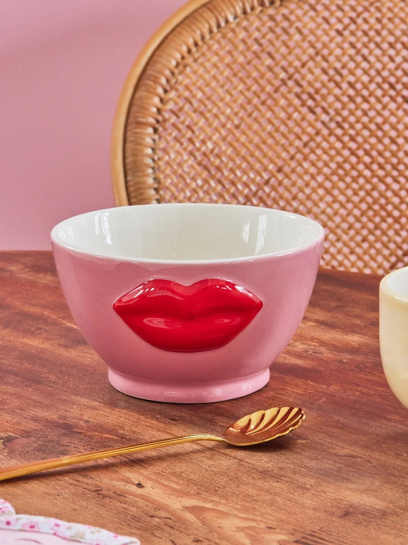 Denne nydelige rosa bollen med store røde lepper støpt inn i designet sprer glede og farge i hverdagen. Perfekt for deg som elsker lekent design og unike produkter som skiller seg ut.