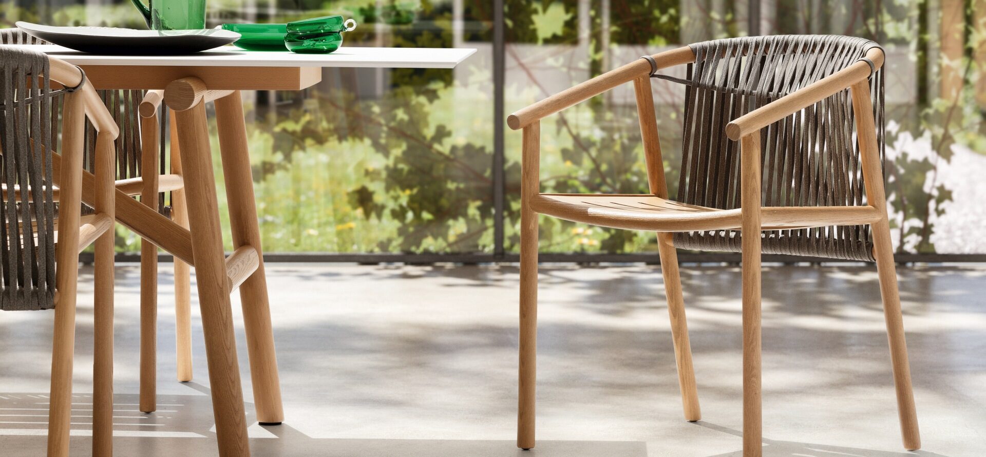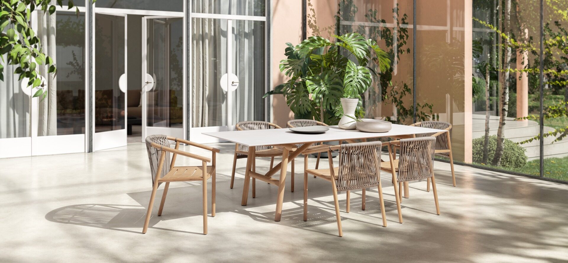 Komplett kolleksjon av eksklusive utemøbler for spiseplass og lounge