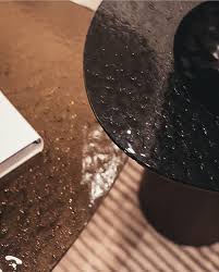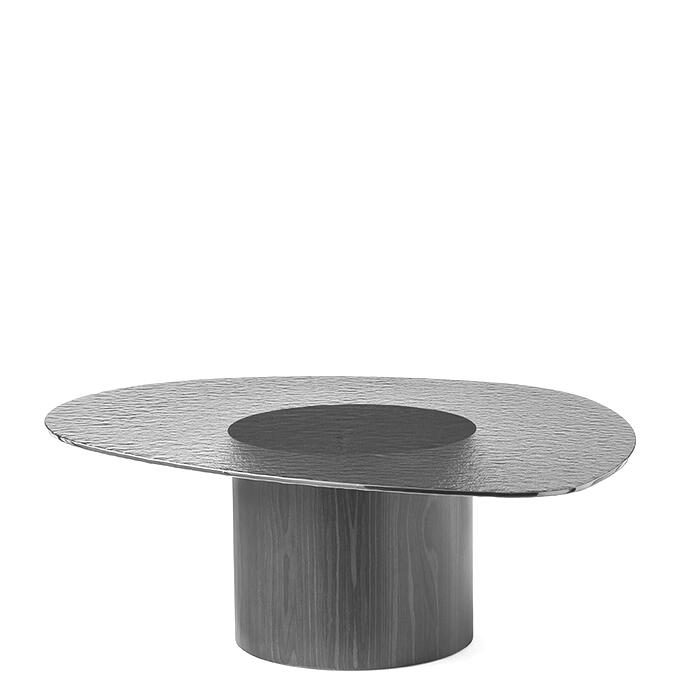 De raffinerte Mushroom-salongbordene kombinerer utsøkte materialer og organiske former. Den buskhamrede glasstoppen bringer tankene til skjønnheten og den fargerike pulsen til glasslimede edelstener. Den slanke sylindriske trebunnen er litt skjev, noe som gir inntrykk av at toppen er hengt litt over den. Selv om toppene er romslige, vil salongbordene være et diskret tillegg til stuen, og bringe funksjonell design og upåklagelig smak til enhver setting uten å være overveldende.