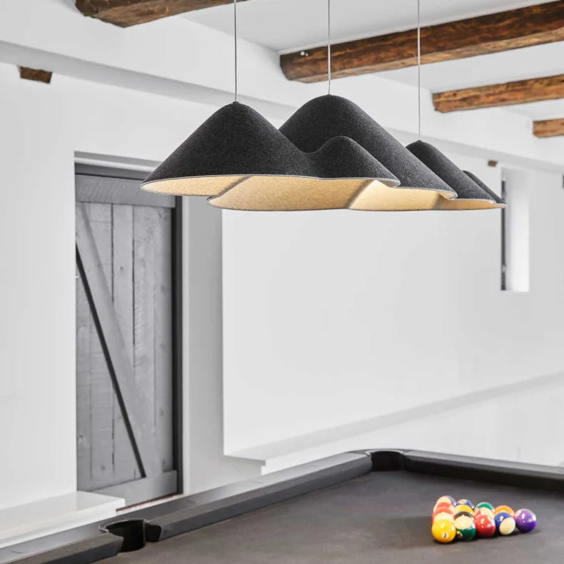 Panorama large mix grå og stort .Denne flotte pendellampen kombinerer naturens skjønnhet med moderne design. Med fem bølgende bakker på lampens overflate, som minner om et bakkelandskap, tilbyr den en unik måte å bringe et snev av naturen inn i hjemmet. Denne pendellampe skiller seg ut med sin iøynefallende grønne farge og et stilig sort indre, som sammen skaper en dyp og innbydende atmosfære.