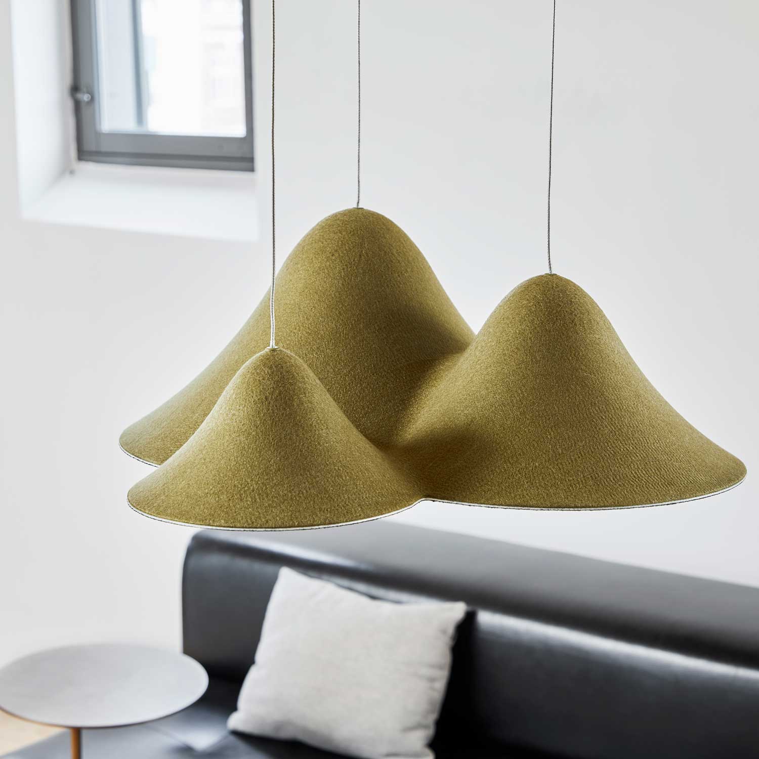 Designet inkluderer tre elegant hevede åser som etterligner et naturlandskap, og skaper en unik visuell og atmosfærisk opplevelse. Hver lampe er laget av høykvalitets materialer som filt, akryl og aluminium, og med sin innebygde LED-teknologi gir den et varmt lys på 2700 Kelvin og 1323 lumen. Dette sikrer en koselig atmosfære som er perfekt for daglig bruk og spesielle øyeblikk.