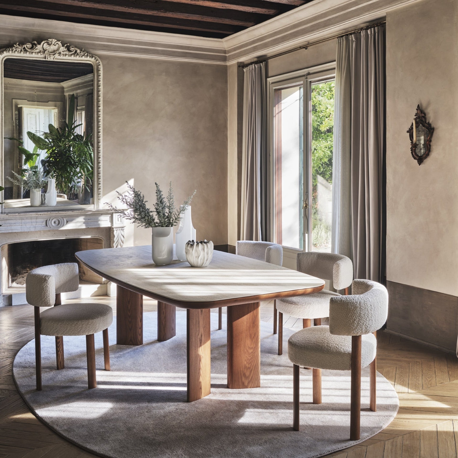 Et ideelt valg for deg som ønsker et kvalitetsbord til spiseplassen – med fokus på design, funksjon og fleksibilitet. Avbildet bord har alle travertino plate topp og canaletto ben.