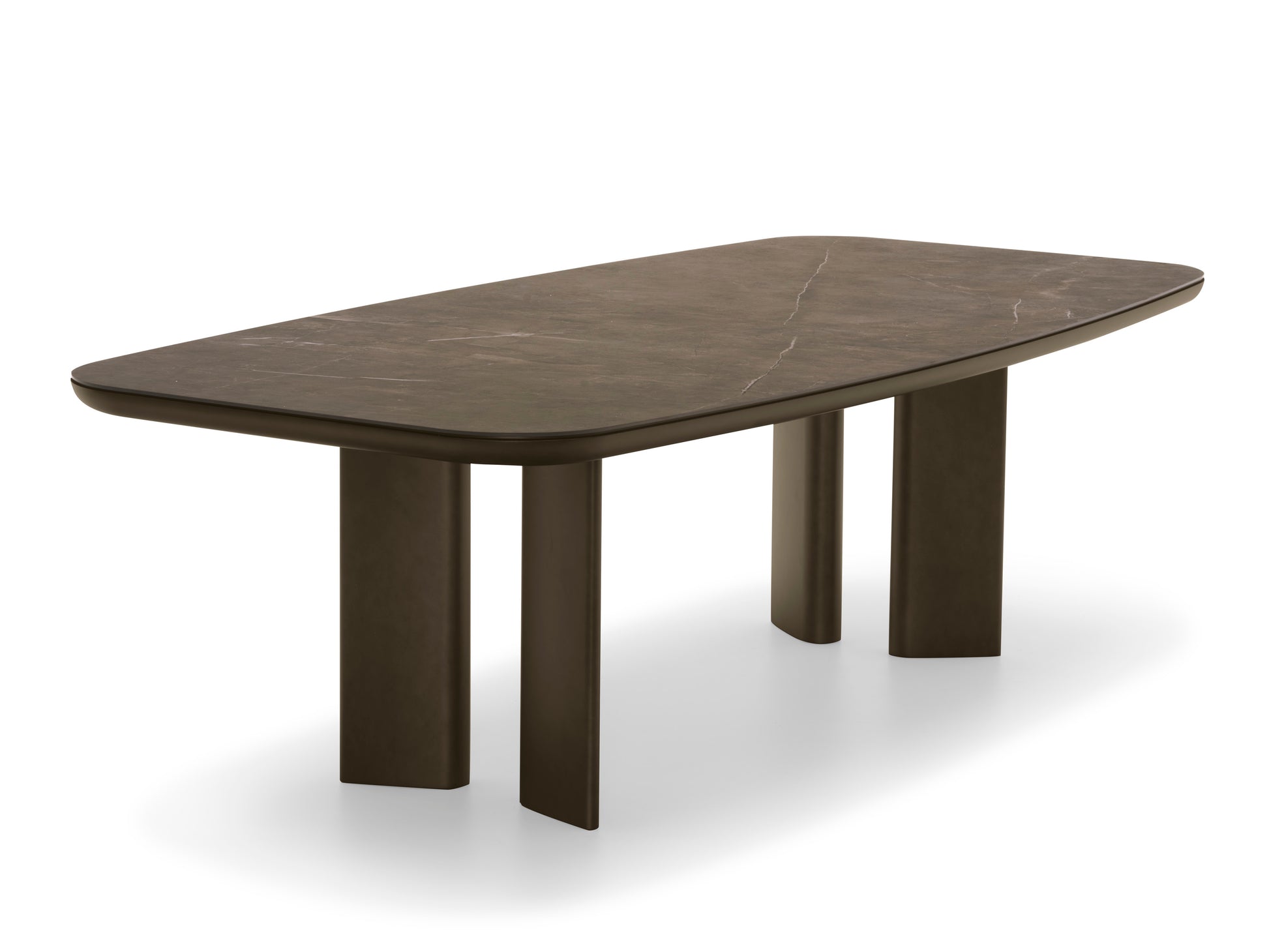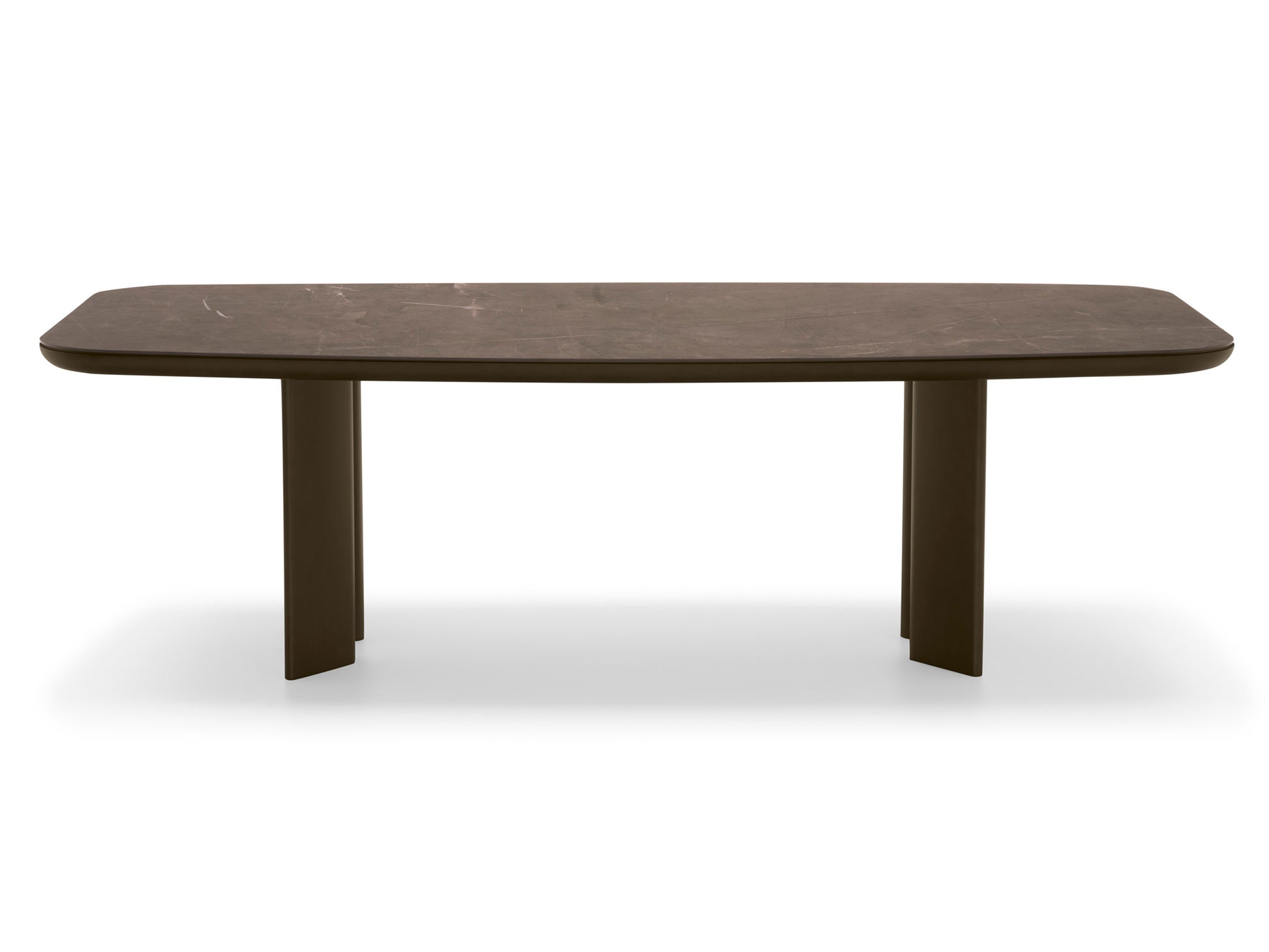 De flotte bena er i heltre ask med utførelsene matt svart, smoke eller valnøtt canaletto, og den keramiske toppen kommer Golden onyx, Salt white (matt), Black Onyx, i hvit marmor, svart calacatta marmor, Calacatta paonazzo , bronze, travertino og silk white marmor. Bordet fåes også i den flotte canaletto fineren med canaeletto ben og herringbone matt back med sorte ben.