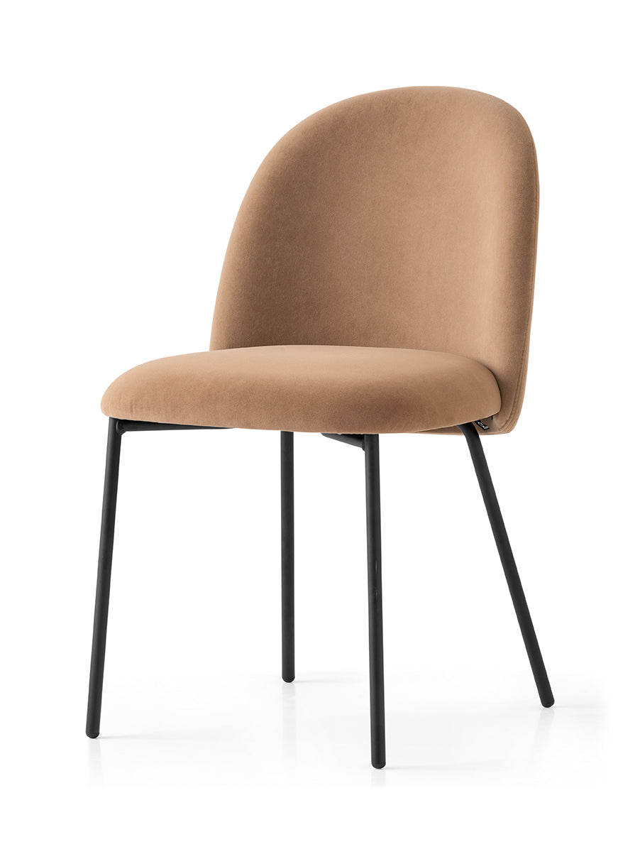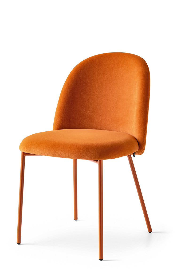 I denne utgaven har stolen en solid metallkonstruksjon, tilgjengelig i flere ulike lakkerte utførelser. Setet kan trekkes i et bredt utvalg tekstiler og farger, slik at du enkelt kan tilpasse stolen etter ditt interiør.