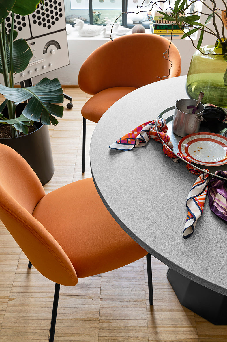 Connubias Tuka-serie omfatter også barstoler, loungestoler og små lenestoler – flere av dem med metallunderstell for et mer industrielt uttrykk.