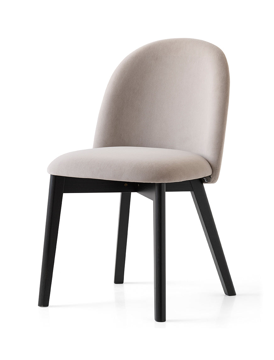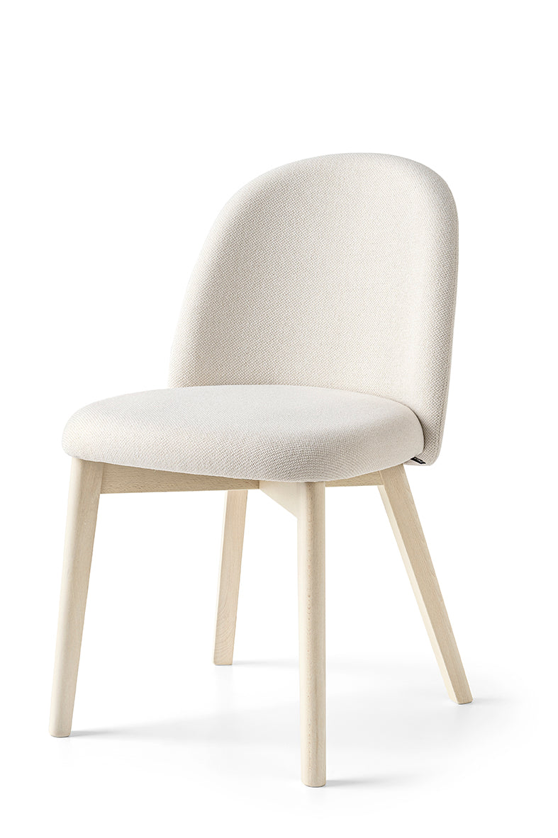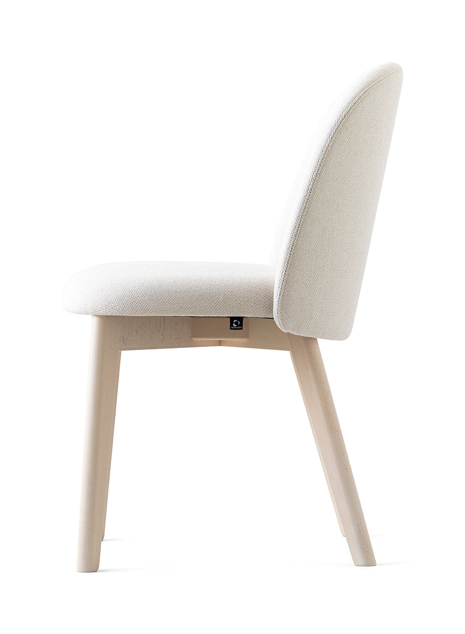 I denne utgaven har stolen en solid trekonstruksjon i bøk, tilgjengelig i flere ulike beisede utførelser. Setet kan trekkes i et bredt utvalg tekstiler og farger, slik at du enkelt kan tilpasse stolen etter ditt interiør.