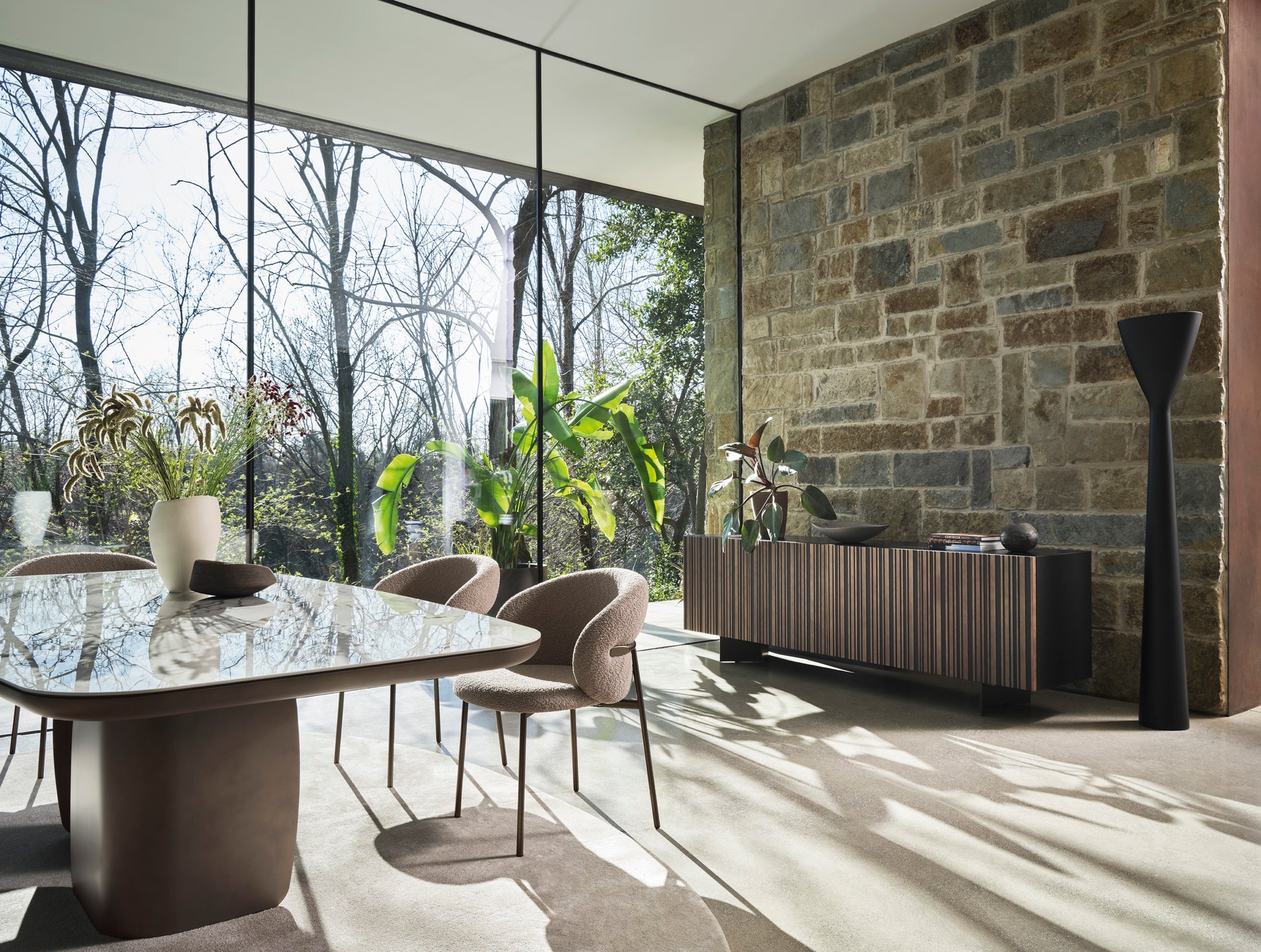 Twins er et bord med stor visuell innvirkning takket være bunnen, som består av to buede og støpte elementer, som to vinger, får toppen til å fly visuelt. Det er mange utførelser tilgjengelig, slik at du kan tolke bordet på en klassisk eller moderne måte.
